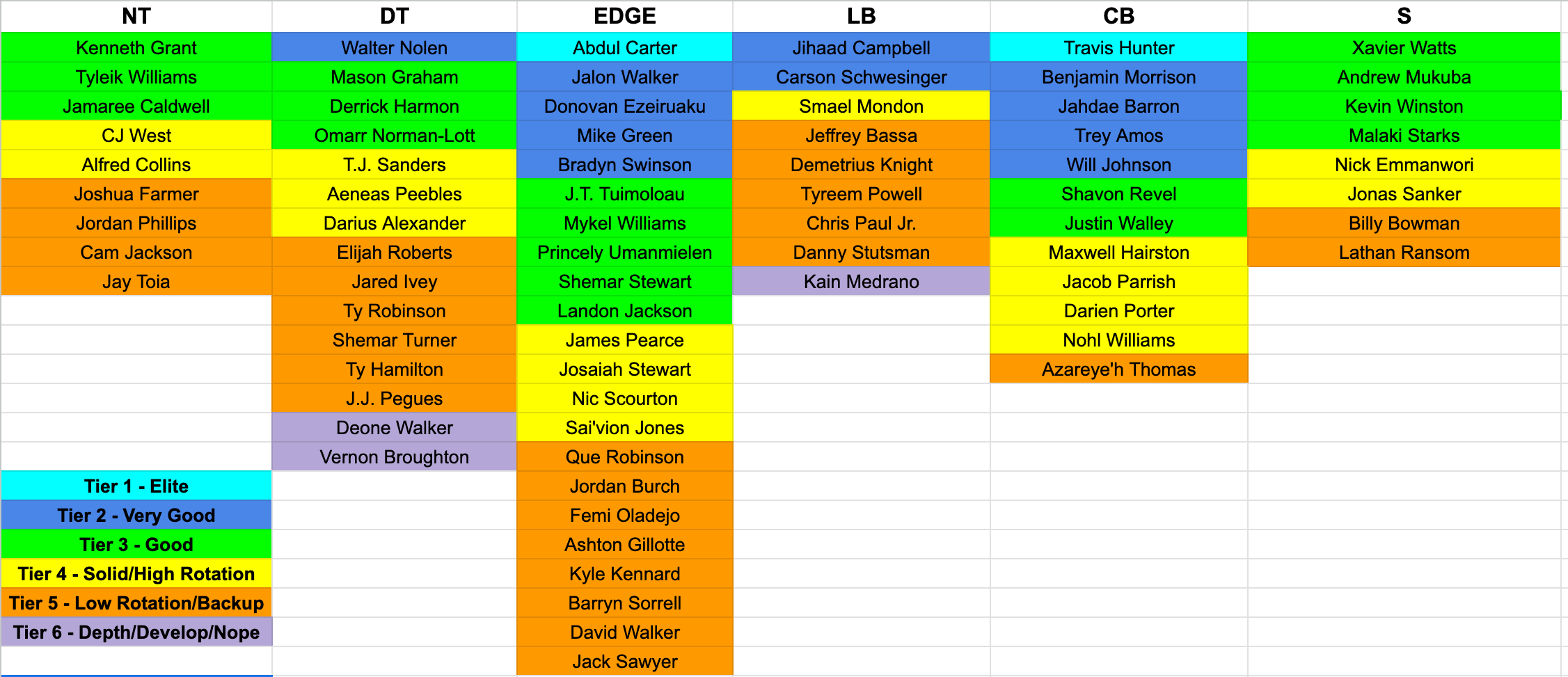 My final 2025 NFL Draft Horizontal Big Board is finally complete. I studied 139 prospects for this year's draft and ranked/tiered them all. One reminder for my final board: